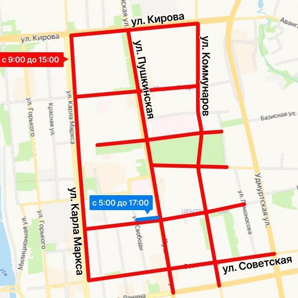 ⛔️Центр Ижевска перекроют 13 сентября В ближайшую субботу, 13 сентября, большинство улиц в центре Ижевска будут закрыты для транспорта, сообщает пресс-служба городской Администрации. Это связано с проведением забега «Динамовская миля» (0+). С 9:00 до 15:00 движение закроют на улицах: ▪️Пушкинская (от ул. Кирова до ул. Ленина); ▪️Советская (от ул. К. Маркса до ул. Удмуртской); ▪️Коммунаров от ул. Кирова до ул. Ленина; ▪️Красногеройская (от ул. К. Маркса до ул. Ломоносова); ▪️Лихвинцева и Наговицына (от ул. Пушкинской до пл. 50 лет Октября); ▪️Кирова (сторона дороги от ул. К. Маркса до ул. Коммунаров); ▪️К. Маркса (сторона дороги от ул. Советской до ул. Кирова). Также с 9:00 до 15:00 движение будет закрыто в переулке Широкий, а с 05:00 до 17:00 субботы – на участке улицы Красногеройская от Свободы до Пушкинской. Фото: Администрация Ижевска Подписывайся на Ижевский бизON #Ижевск