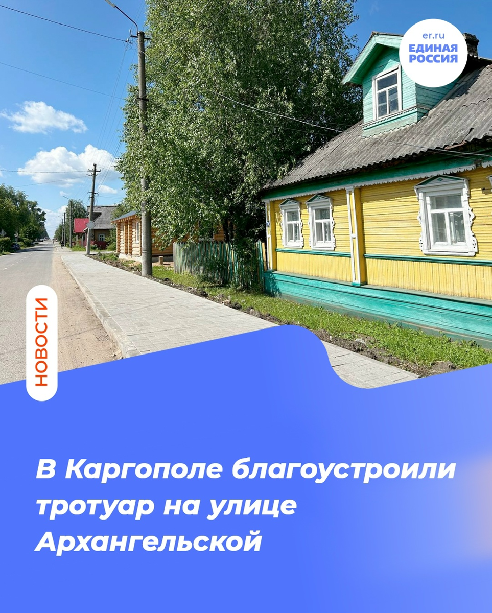 ✨ Народная программа «Единой России»: В Каргополе благоустроили тротуар на улице Архангельской