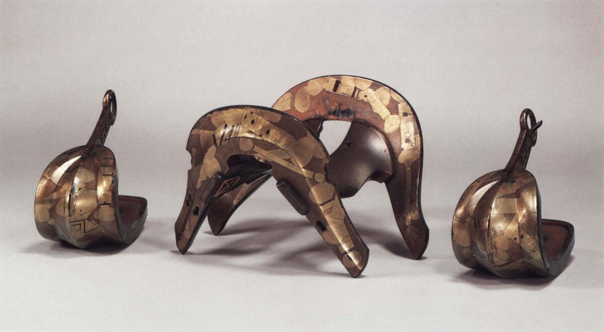 Седло и стремена с узором в виде косметической кисточки, Япония, 18 век