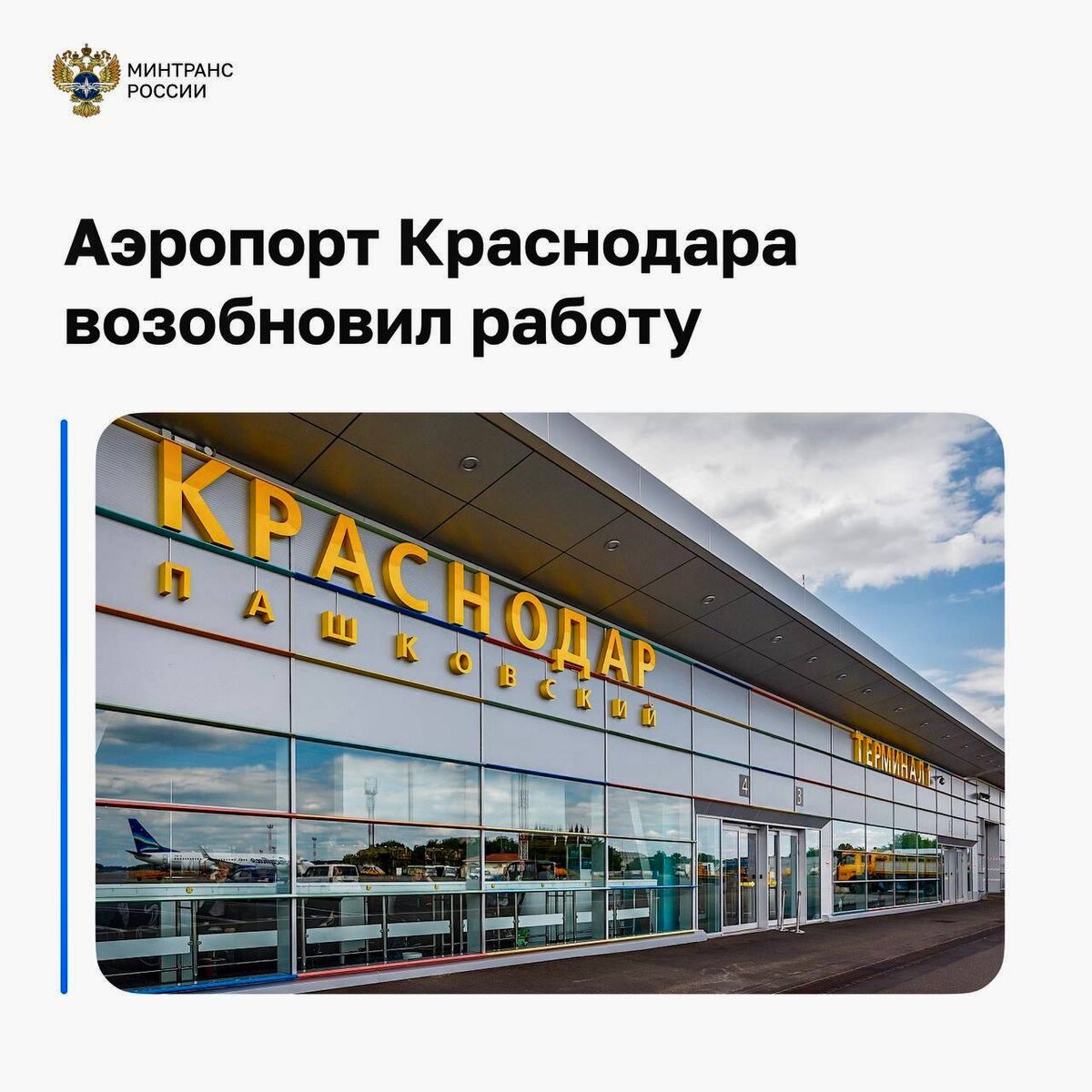 Аэропорт Краснодара официально ОТКРЫТ! Первый рейс из Москвы приземлится в столице Кубани уже 17 сентября.