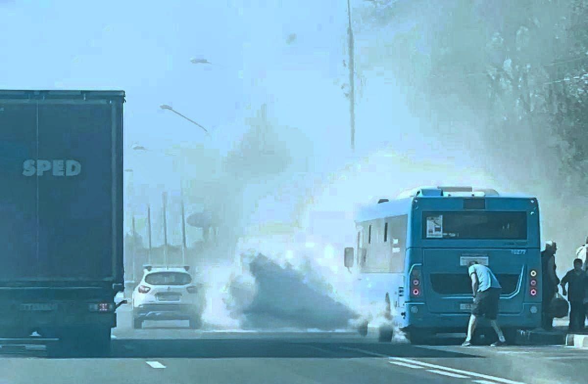 Инцидент произошел у поселка Заволжский в Твери 11 сентября. Задымился автобус "Транспорта Верхневолжья".