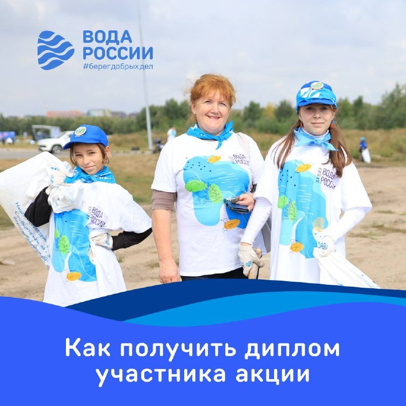 А вы уже получили диплом участника акций? Добрые дела, которые совершают волонтеры акции #ВодаРоссии – бесценны, ведь это забота о природе своего региона. Каждый собранный мешок мусора – весомый вклад в защиту экологии и спасение водоемов. 🙌🏻 Мы благодарны каждому и напоминаем, что вы можете получить диплом об участии в акции, даже если не были ее организатором. Три простых шага: 1. зарегистрируйтесь и авторизуйтесь на сайте; 2. найдите мероприятие на карте в разделе «Прошедшие акции». 3. нажмите на кнопку «Я — волонтер» и прикрепите фотографии, сделанные во время уборки. ✅ Когда модератор проверит снимки, они появятся в альбоме мероприятия, а вы сможете скачать диплом участника акции в «Личном кабинете».
