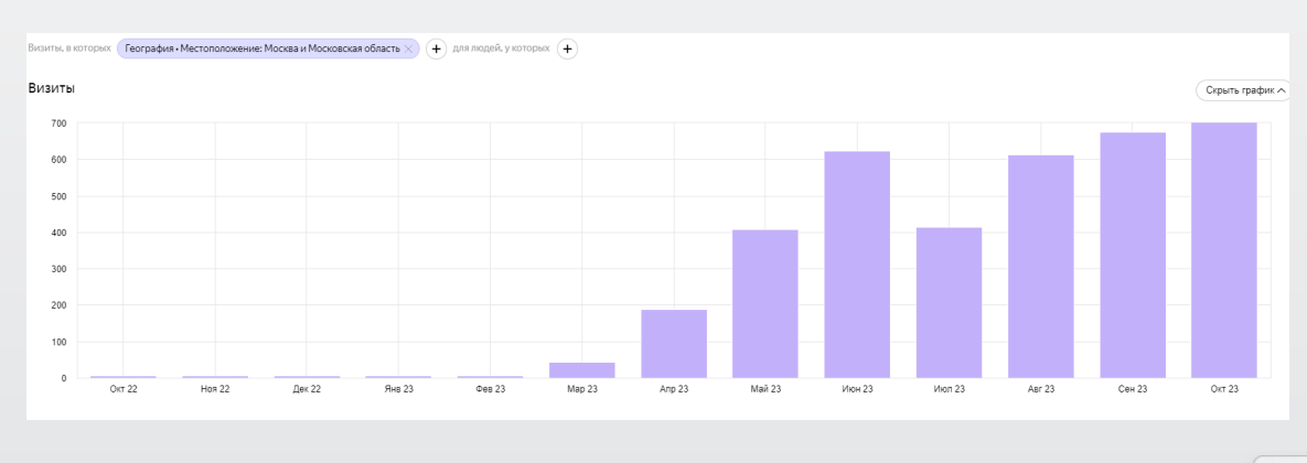 Работы по продвижению я начал в январе 2023 года. Сайт на тот момент работал на устаревшей версии Bitrix CMS и был заражён вирусами-редиректами. Это, конечно, напрямую сказалось на том, что сайт не имел никакой видимости в поиске. По сути, ресурс представлял собой простую визитку из трёх страниц. Одна из них — раздел «О компании», и на этом почти всё. Первым делом я занялся очисткой CMS от вирусов и обновлением. Без этого любые дальнейшие шаги не имели бы смысла: продвигать заражённый сайт бессмысленно. После очистки и обновления CMS сайт наконец-то стал работать стабильно. Следующим шагом я занялся технической оптимизацией: настроил корректные редиректы, проверил индексацию страниц и убрал ошибки в коде темы которые появились после обновления версии PHP. Когда техническая часть встала на место, я начал прорабатывать структуру. Визитка с тремя страницами не могла конкурировать ни в одной нише. Поэтому мы добавили полноценный раздел услуг, блог и отдельные посадочные страницы под ключев