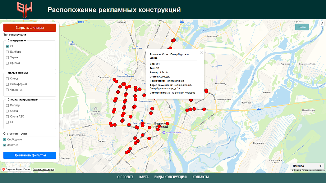 В НовГУ создали интерактивную карту рекламных конструкций в Великом Новгороде