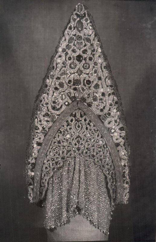 Галичский кокошник в своей полной полноте) Извините за тавтологию. С этим типом кокошника надо конечно разбираться отдельно. Я пока для себя отметила аж 4 типа его орнаментальных решений, около 2 вариантов ношения с разными поднизями и порядка 3-4 типов налобника. #нанегативе@chistyakovaemb