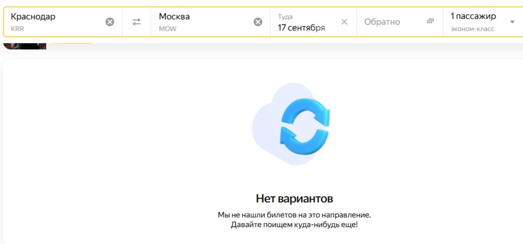 🤔 А вот мы решили проверить, есть ли билеты на 17 сентября на самолет Краснодар - Москва