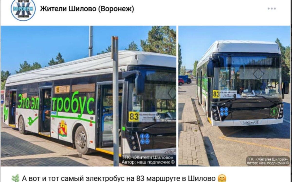 Электробус перевели на маршрут №83 «Вокзал «Воронеж-1» – Шилово»