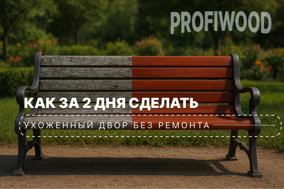 Неухоженный двор старит весь дом. Сколько бы сил вы ни вкладывали, серые скамьи и выгоревший забор создают ощущение запущенности. И хозяин сам начинает думать: «Ну всё, нужен капитальный ремонт». На самом деле достаточно пары выходных и кисти с морилкой, чтобы двор снова выглядел достойно. В этой статье вы узнаете: Осень — это не только про яркую листву и уютные вечера, но и лучшее время для ухода за деревом. В отличие от лета, когда жара мешает равномерному нанесению, сейчас составы ложатся ровно и без пятен. Мягкий осенний свет подчёркивает новые оттенки, делая их особенно выразительными. А свежий слой покрытия сразу же становится щитом от влаги, дождей и туманов, которые неизбежно приходят в это время года. И тут хорошая новость: обновление не требует капитального ремонта. Морилка матовая на водной основе Profiwood подчёркивает текстуру дерева и возвращает цвет. Причём оттенки идеально совпадают с осенним настроением: Осень меняет двор не только красками листвы. Достаточно выбрать о