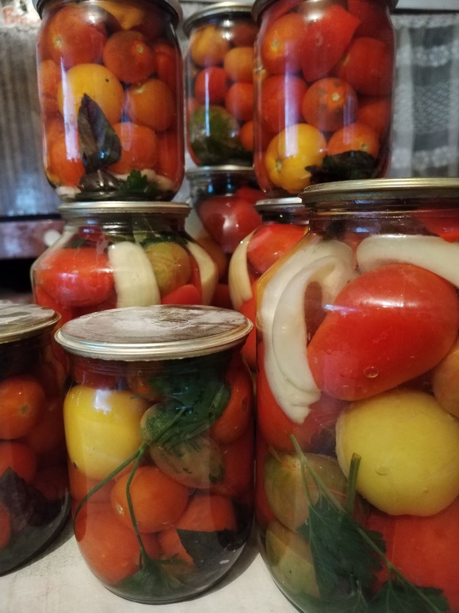 Как красиво🥰! А ведь это еще и вкусно👍 Я никогда не закрывала черри и тем более в маленькие банки. Но у меня остались только баночки 0,5 л - вот и черри пригодились. Если честно, я жуть как не люблю их собирать😱