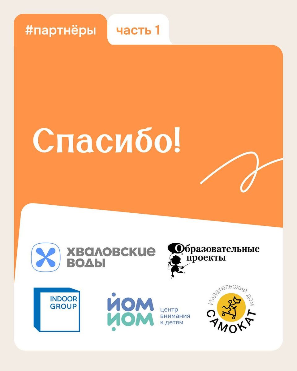 Фестиваль завершился! Он получился замечательным , и мы хотим поблагодрить всех причастных! Большое спасибо нашим партнёрам: 🙌 Издательство «Образовательные проекты». 🙌 Компания Indoor Group и LOGIC – федеральный оператор индор-рекламы. 🙌 Компания «Хваловские воды». 🙌 Инклюзивный центр «Йом-йом». 🙌 Издательство «Самокат». 🙌 K³ Консалтинг: Карьера. Образование. Профориентация. 🙌 Увлекательный центр «Выше радуги». 🙌 Рестораны и кулинарные школы «Дети на кухне». До встречи на следующем Фестивале!