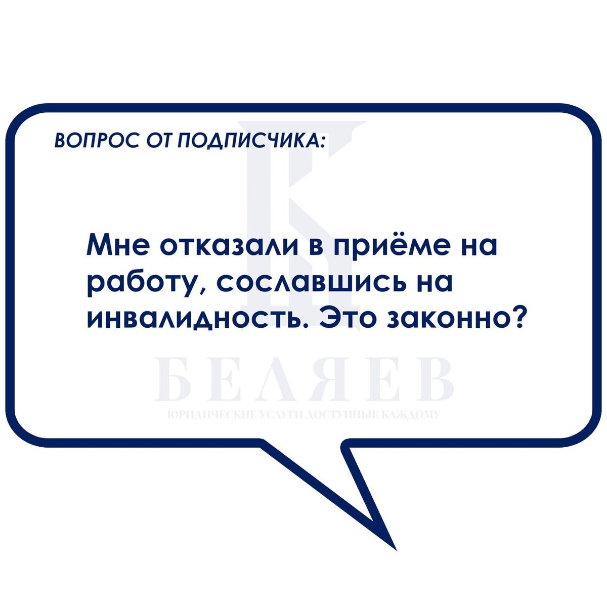 Что делать, если отказали в трудоустройстве из-за инвалидности? 🚫♿ Вопрос подписчика: «Мне отказали в приёме на работу, сославшись на инвалидность. Это законно?» Ответ юриста: 🔹 1. Нет, это незаконно По ст. 64 ТК РФ работодатель не вправе отказывать в заключении трудового договора по мотивам инвалидности. 🔹 2. Когда отказ допустим Исключение — если работа объективно противопоказана по состоянию здоровья (например, тяжёлый физический труд при инвалидности). Это должно подтверждаться медицинским заключением. 🔹 3. Что делать Попросите письменный отказ (обычно работодатели его избегают). Обратитесь в трудовую инспекцию или прокуратуру. Подайте иск в суд с требованием компенсации морального вреда и возмещения упущенной выгоды. 🔹 Пример из практики Инвалиду отказали в приёме на работу менеджером. Суд обязал работодателя выплатить компенсацию за дискриминацию. 🔹 Советы юриста ✅ Всегда просите официальное объяснение. ✅ Фиксируйте разговоры и переписку (это доказательства). ✅