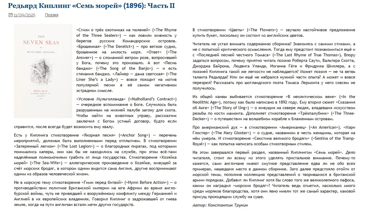 Редьярд Киплинг «Семь морей»: Часть II - Критика
