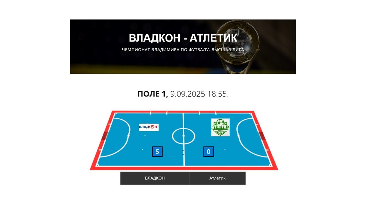 Чемпионат Владимира по футзалу. Высшая лига 09.09.2025 г. ВЛАДКОН - Атлетик 5:0 (3:0) Обзор