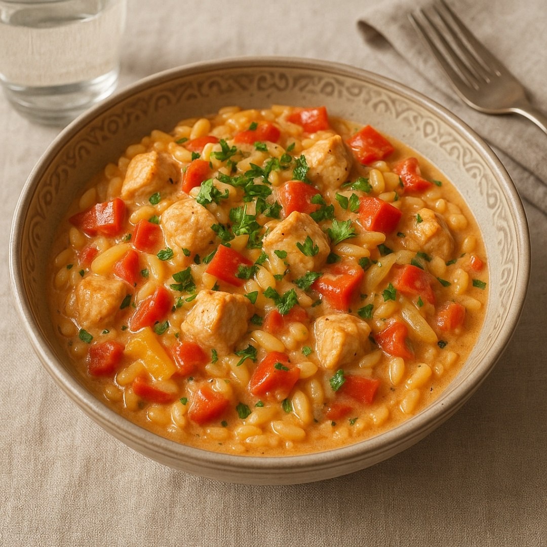 Паста птитим с курицей Ингредиенты ⤵️ 🔸 Паста птитим – 200 г 🔸 Куриное филе – 300 г 🔸 Болгарский перец – 1 шт. 🔸 Лук репчатый – 1 шт. 🔸 Чеснок – 2 зубчика 🔸 Томатная паста – 2 ст. л. 🔸 Сливки 10% – 100 мл 🔸 Оливковое масло – 3 ст. л. 🔸 Соль, перец - 1 щепотка 🔸 Зелень - 1 пучок Приготовление 🍝 1. Куриное филе нарезать кубиками. Лук, перец и чеснок измельчить. 2. Пасту птитим отварить согласно инструкции на упаковке до состояния al dente. 3. На разогретой сковороде с оливковым маслом обжарить курицу до золотистой корочки, посолить, поперчить, добавить паприку. 4. Добавить лук, обжарить до прозрачности, затем добавить перец и чеснок, готовить ещё 5 минут. 5. Добавить томатную пасту, перемешать, влить сливки и тушить 3-4 минуты. 6. Добавить отваренную пасту птитим, аккуратно перемешать и прогреть 2-3 минуты. 7. Подавать, посыпав свежей петрушкой. Рецепт дня #паста #птитим #мясо #курица #филе #овощи #сливки #зелень #специи #ужин