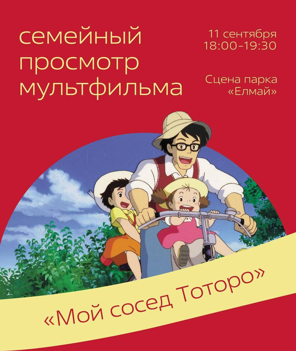 11 сентября картина Хаяо Миядзаки «Мой сосед Тоторо» ✨ История о двух сестрах, которые знакомятся с лесным духом и называют его «Тоторо». Подружившись с девочками, Тоторо не только устраивает им воздушную экскурсию по своим владениям, но и помогает увидеться с мамой, которая лежит в больнице. Сцена парка Елмай в 18:00 @kazandetki Больше информации в нашей группе, переходите