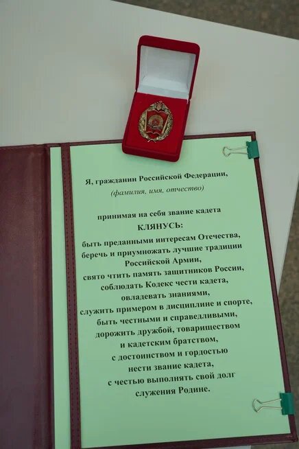 Каждый воспитанник, приведенный к Клятве, получил нагрудный знак, как символ единства кадет, удостоверение и поздравительное письмо.