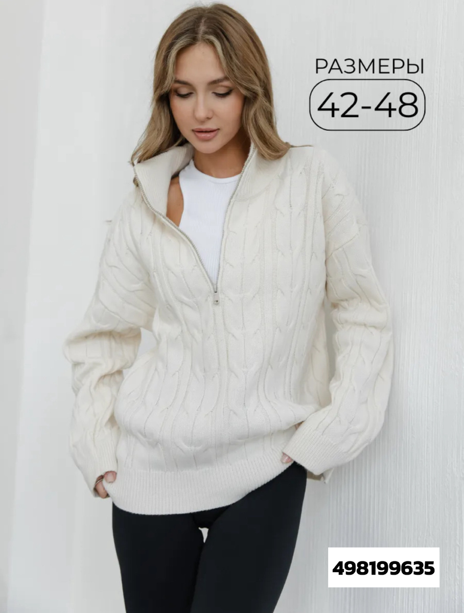 Что это. Объёмный молочный свитер с фактурной косой и молнией-поло.