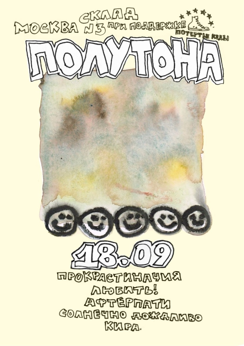 Мск 2025.09.18 Афтерпати / Прокрастинация / Солнечно Дождливо / Любить! / Кира † Склад №3 19:00 500р † vk.com/procrastination_msk