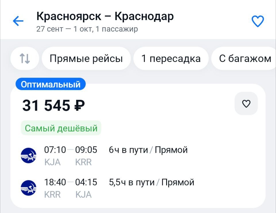 ⚡️⚡️ КРАСНОДАР из Красноярска! 4 частоты в неделю из #KJA от нацпера, с 27 сентября!