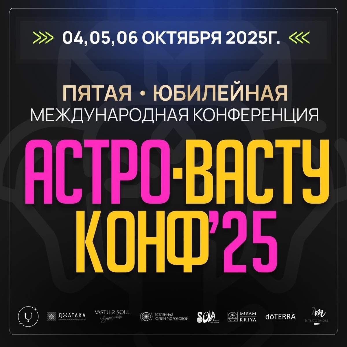 Ведическая астрология (VK) 🪐 5-я Международная Астро-Васту Конференция ждет вас! 4-6 октября Друзья, любители астрологии, Васту, медитаций, мантр и все-все, кто жаждет новых знаний! Совсем скоро, с 4 по 6 октября, состоится грандиозное событие — пятая Международная Астро-Васту конференция! Это тот самый форум, который сотни людей ждут из года в год, и не просто так! Вас ждет насыщенная программа и уникальный материал от сильнейших экспертов. Почему в этом году конференция обязательна к посещению? Мощнейший состав спикеров: Вас ждут выступления топовых астрологов, Васту экспертов, настоящих гуру своего дела. Конференция впервые так масштабно объединяет разные школы! · Юлия Морозова - Доктор Васту Шастра, ведический астролог и кристаллотерапевт. · Живая легенда: Сергей Балута— Гранд-доктор философии, Президент Союза Ведических Архитекторов и автор фундаментальных трудов, таких как «Ведическая архитектура третьего тысячелетия». · Дмитрий Бутузов - ведическая —... Перейти на ориги