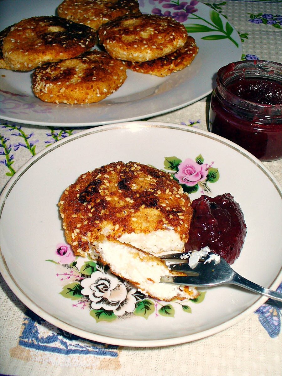 Всем привет! *Нежнейшие творожно - рисовые биточки "Артек" с домашним джемом из груш, нектаринов и черноплодной рябины. Мой супруг любит добыть какую нибудь почти несъедобную еду и принести ее домой, раздуваясь от гордости. Сколько говорю ему - не тащи в дом всякую дрянь, ан нет - все равно прет. Вот притащил абсолютно каменных груш и клятвенно меня уверял, что они вот вот будут мягкими и вкусными. Груши лежали - лежали и начали гнить и скукоживаться. Ну, думаю, варенье хоть сварю, нектаринчик добавлю, для аромата. Нарезала груши, нектарин, засыпала сахаром и оставила на пару часов. Потом начала варку варенья. Смотрю - груши напоминают куски камня, вареные в сиропе. Сама себе думаю - ну почему сразу не выкинула! Еще и сахар перевела. А теперь то уже выкинуть жалко. Остудила и перебила блендером. Ничо так на вкус. Но цвет - жесть) А добавлю ка я еще протертой черноплодной рябины, для цвета. И добавила. Потом все перемешала, закипятила и вполне вкусный продукт получился) Черноплодную