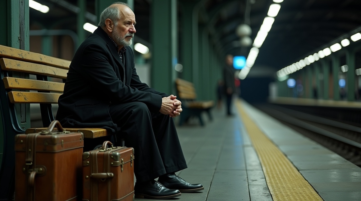 Поезд ушёл в тринадцать ноль-ноль, и на перроне сразу стало тише. Люди разбрелись по своим делам, оставив лишь редкие шаги и шелест газет на ветру. Ветер затих, и на мгновение показалось, что вокзал вымер. У старой скамейки у конца платформы сидел мужчина в тёмном пальто. Он не встал вместе со всеми, не пошёл к выходу, просто смотрел вперёд, будто ждал кого-то, а его портфель стоял у ног, словно тяжёлый якорь, не дававший ему сдвинуться. Марина заметила его ещё утром, когда пришла на вокзал пораньше, чтобы купить билет. Мужчина сидел так же — неподвижно, с портфелем у ног, и даже поза его не изменилась. Казалось, его и время не касалось: толпы менялись, вагоны приходили и уходили, а он оставался на месте, как статуя, вросшая в скамейку. К вечеру Марина вернулась. Её поезд задержали, и она снова прошла мимо той самой скамейки. Мужчина всё ещё был там, сидел так же неподвижно, и только плечи его чуть дрожали от сырости. На этот раз он поднял глаза и посмотрел прямо на неё. Взгляд был ст