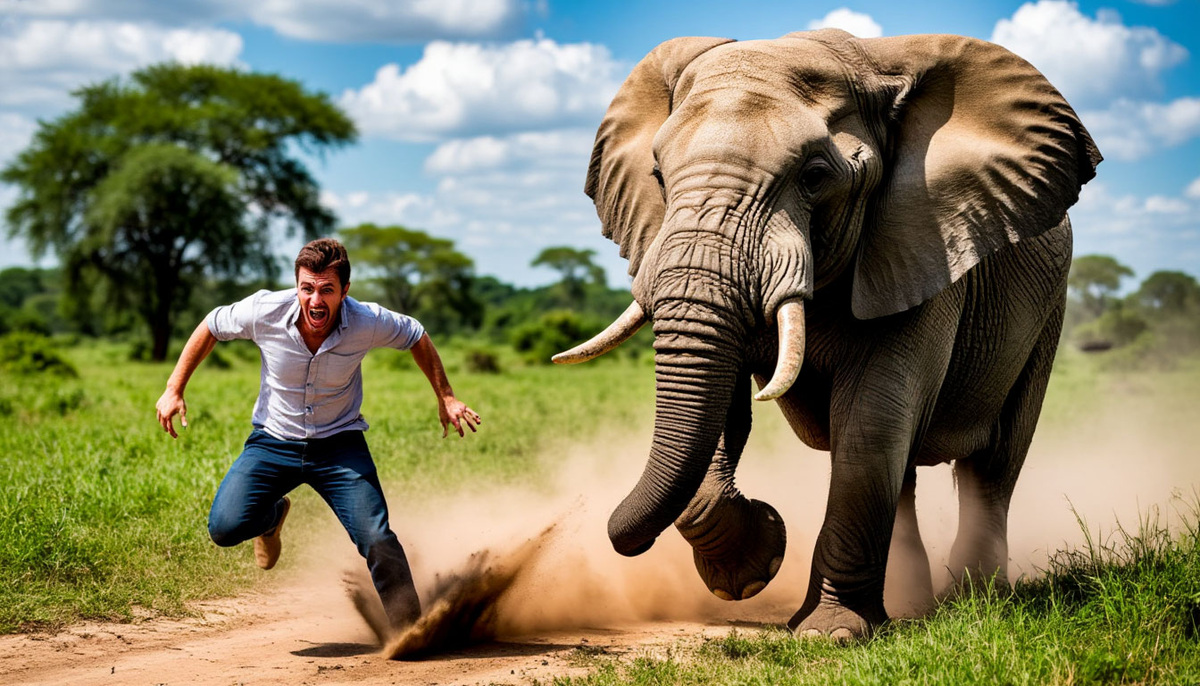 1. Если человек понимает, что слон делает имитацию атаки, нужно сохранять спокойствие и сосредоточиться на том, чтобы показать гиганту отсутствие угрозы. Это можно сделать с помощью мягкого голоса, не разводя широко руки и не размахивая ими.