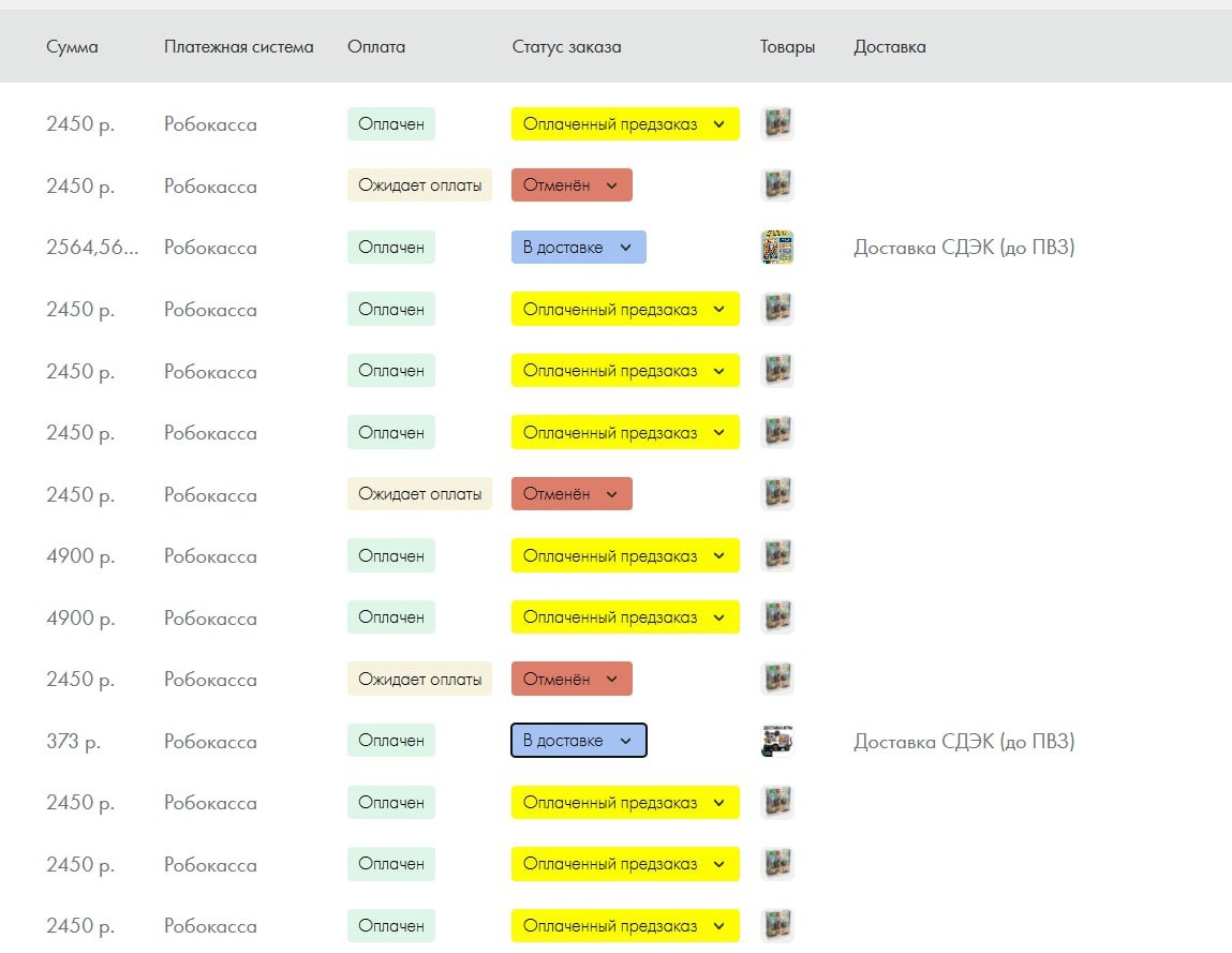Друзья, статусы заказов в личном кабинете на сайте пока что приходится выставлять вручную - автоматизацию Тильда не предусмотрела