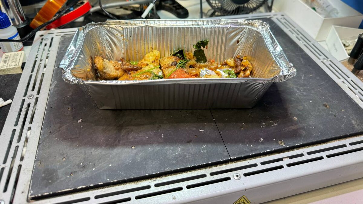 Когда контейнер с едой нельзя погреть в микроволновке, выручает паяльная станция