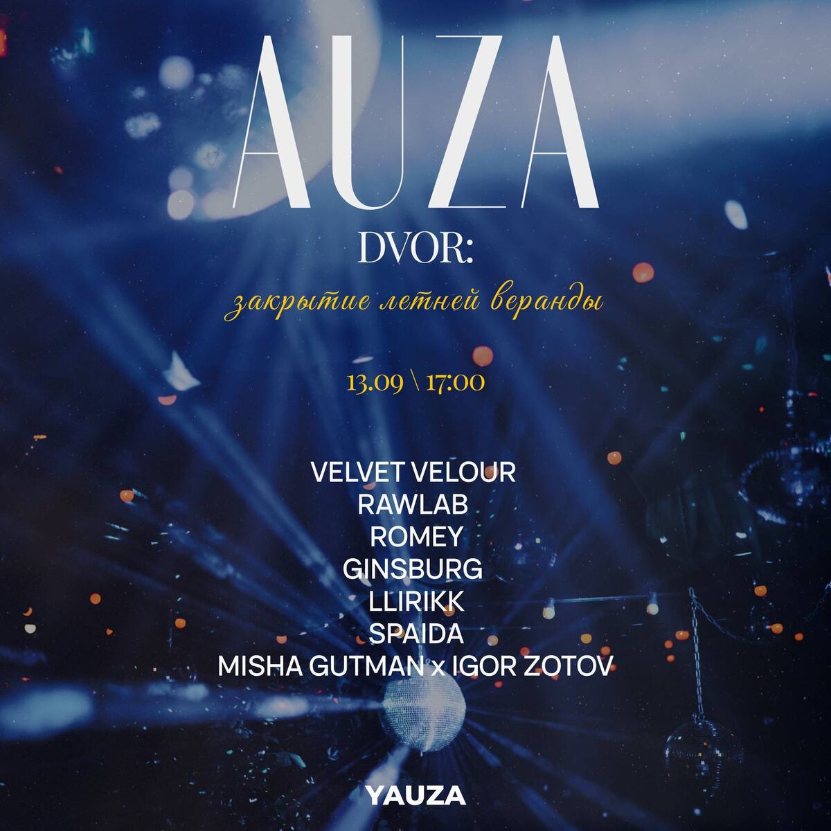 13 сентября / Auza Dvor: закрытие летней веранды YAUZA Утешаем себя мыслями, что это не прощание, а лишь пауза — в субботу спорим с календарем, встречаясь на финальной летней вечеринке. Совершенно оправданно одеться не совсем по погоде — еще раз выгулять любимый наряд, сначала в праздничных декорациях двора, а после 23:00 — на танцполе внутри. VELVET VELOUR RAWLAB ROMEY GINSBURG LLIRIKK SPAIDA MISHA GUTMAN x IGOR ZOTOV 🎫 Вход c 17:00 до 19:00 — свободный по регистрации. Регистрация и билеты — по ссылке. 📆 13 сентября, в 17:00 📍Yauza, Москва, Подколокольный пер., 16c4
