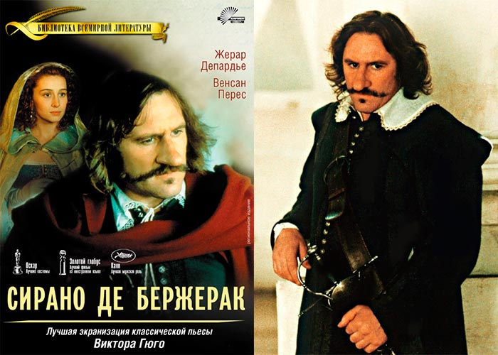 Сирано де Бержерак / Cyrano de Bergerac. Франция, 1990. Режиссер Жан-Поль Раппно. Сценаристы: Жан-Клод Каррьер, Жан-Поль Раппно (по пьесе Эдмона Ростана). Оператор Пьер Ломм. Актеры: Жерар Депардье, Анн Броше, Венсан Перес, Жак Вебер и др. Комедия. Мелодрама. Премьера: 28.03.1990. Прокат во Франции: 4,7 млн. зрителей. Прокат вне Франции: 5,5 млн. зрителей, из них – 1,4 млн. зрителей в США.