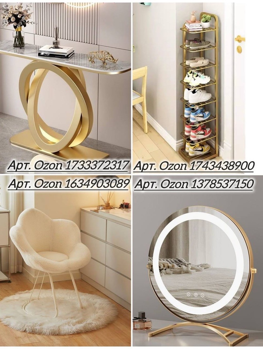 Эта подборка с Ozon — как капсульный гардероб для интерьера. Скульптурные консоли, мягкие кресла, световые акценты и графика легко миксуются между собой, создавая «дорогую» картинку без ремонта. Сохраните артикулы, отмерьте правильные пропорции (высота света, интервалы между рамами, «воздух» вокруг крупного декора) — и ваш дом начнёт работать как идеально собранный образ.