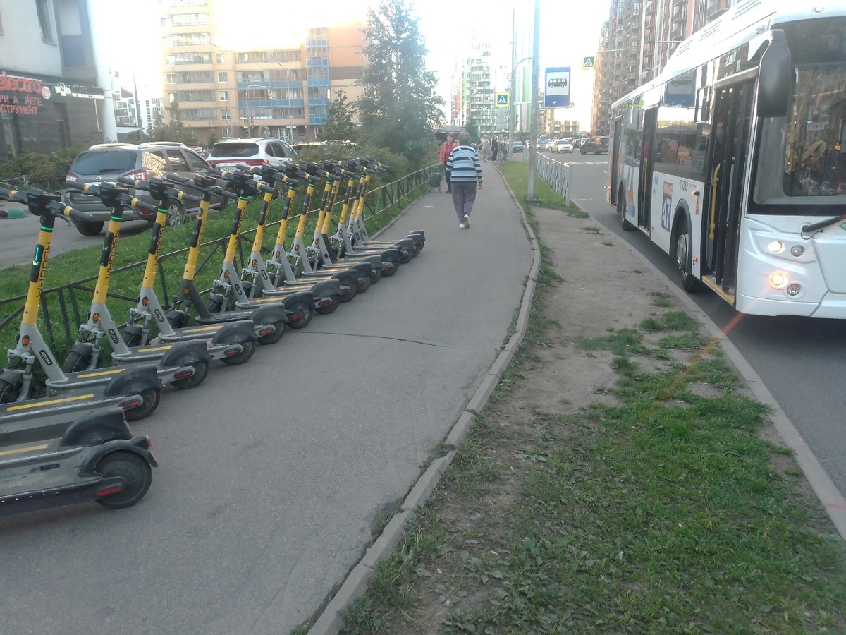 Вуш, вы совсем конкретно оборзели??! ул. Английская, тротуар примерно 2,5 метра, вы выставили в огромный ряд свой самокатный хлам! Мы так и будем ждать у нас в городе "у моря погоды"? ДТП и ЧП Кудрово