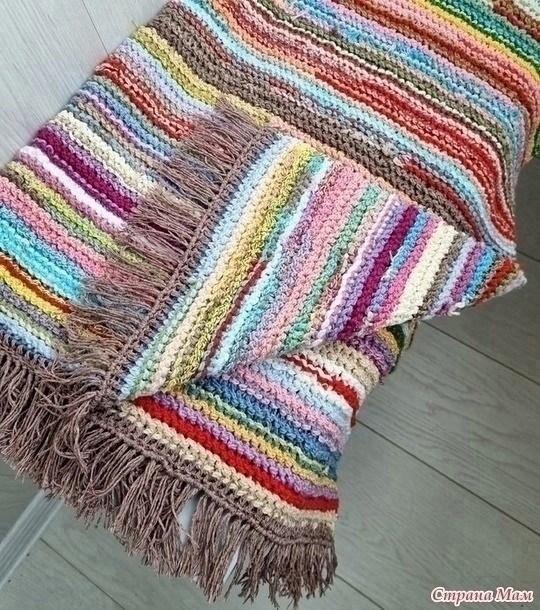 Коврик спицами "Как бабушкин"... Ковриковая пряжа. Крючком цепочка из воздушных петель... Размеры 74 * 166 см, вместе с бахромой.