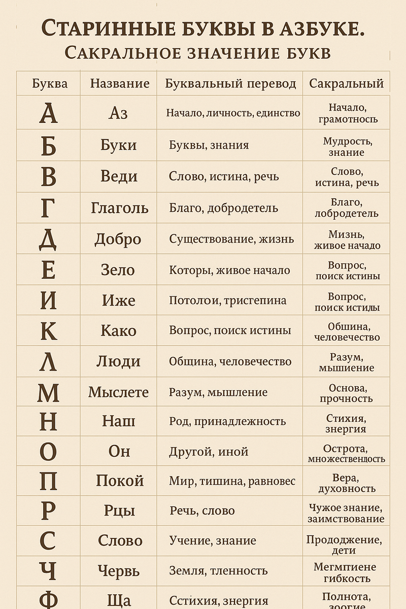 И, возможно, обращаясь к древней азбуке, мы возвращаем себе не только утраченное знание, но и связь с мировоззрением предков, где слово было священно, а буква — ключом к тайне мироздания.