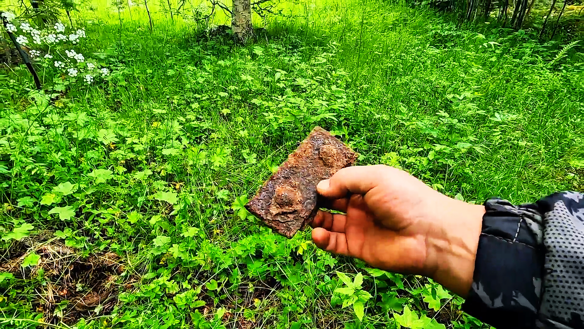 Август выдался жарким, но сегодня погода порадовала — было относительно прохладно. Я решил не упускать момент и отправился на поиски с металлоискателем. Первая локация — старая поляна, где раньше деревенские жители косили сено. Начал обследование с окраины. Сигналов было много, но, к сожалению, в основном мусор: банки, фольга и прочие бытовые отходы. И вот, когда уже начал терять надежду, прибор выдал чёткий сигнал. После раскопок обнаружил две пластины, соединённые заклёпками — похоже на кованое изделие. Не успел я обрадоваться находке, как металлоискатель снова запищал. На этот раз сигнал был глубоким, но уверенным. Главная находка дня — довольно крупный металлический предмет. После очистки от песка оказалось, что это топор! Необычный экземпляр: похож на финский, с набойкой сверху, но форма другая. Однозначно, редкая вещь. Продолжил поиски на этом месте, но больше ничего интересного не нашёл. К тому же высокая трава и назойливые мошки мешали обследовать поле, пришлось двигаться д