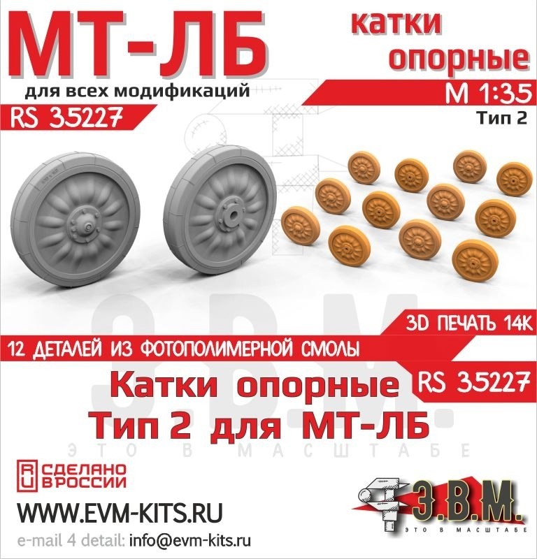 Э.В.М. из Севастополя выпустила на 3D-принтере опорные катки для моделей гусеничного тягача МТ-ЛБ (Тип 2) в масштабе 1/35: Опорные катки для модели гусеничного тягача МТ-ЛБ (Тип 2) - каталожный номер RS35227