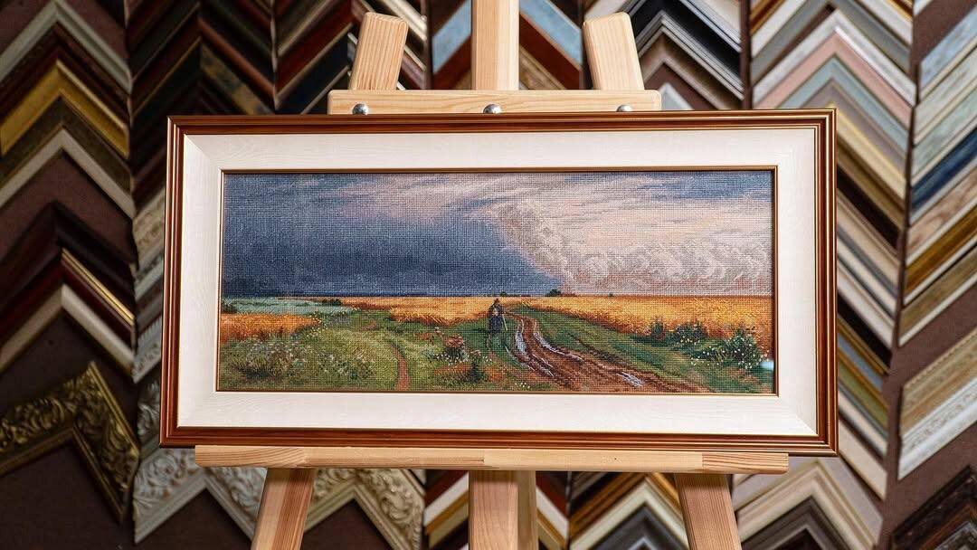 А вот такой замечательный пейзаж вышила наша постоянная заказчица Марина из Санкт-Петербурга. «Дорога во ржи» И. Шишкина от фирмы «Panna». Посмотрите, как замечательно получилось! 😍
