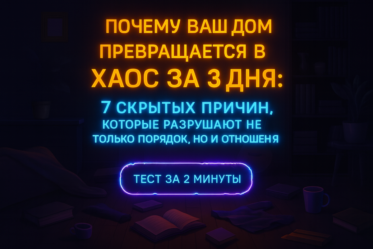 Вы когда-нибудь замечали странную закономерность? В понедельник дом сверкает после выходной уборки, а к четвергу снова носки на стуле, посуда в раковине, и искать ключи приходится по всей квартире. "Наверное, я неорганизованный человек", — думаете вы. А что, если проблема совсем не в лени?