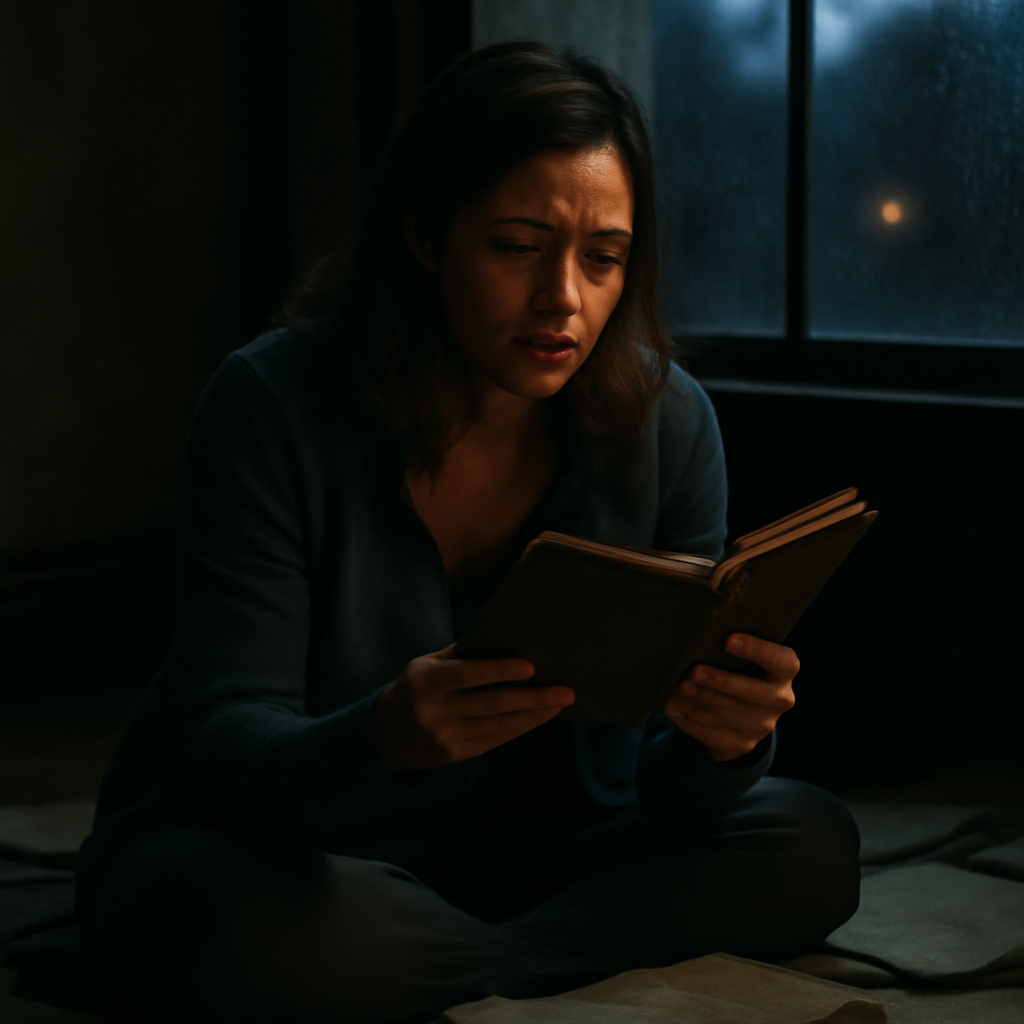 Я сидела на полу, держа тетрадь в руках. За окном уже стемнело. В квартире было тихо, только холодильник гудел на кухне.
