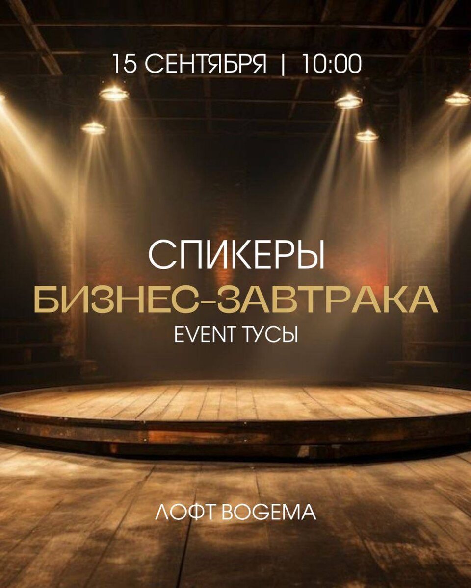 Тусеры! Спикеры первого бизнес-завтрака Event Тусы уже готовы делиться опытом! 🚀 📅 15 сентября | 10:00–13:00 📍 Лофт BOGEMA 💸 Участие: 1777 ₽ На сцене ядро нашего сообщества: 🎤 Никита Щербинин «Как подготовиться к переходу из малого бизнеса в средний и вырасти в 10Х» 🎤 Александра Котельникова «Воркшоп: 15 идей для новогодних корпоративов - на любой бюджет и масштаб» 🎤 Олег Вальтер «История становления лофта BOGEMA: путь малого бизнеса, мотивация и ошибки» 🎤 Дмитрий Осипов «Подход к управлению с использованием данных» 🎤 Анастасия Бузенкова «Что такое продюсирование и как начать работать с организаторами топ-сегмента» 🤝 Главный бонус - нетворкинг. Это не лекции для галочки - это живая тусовка, где можно завтракать, учиться и знакомиться с теми, кто двигает рынок. ⚡️ 3 часа концентрированного опыта, инсайтов и новых связей. 👉 Регистрируйся прямо сейчас, пока есть места: https://в-банкет.рф/brekfast 🔥 Приходи и стань частью тусовки, где рождаются новые кейсы и коллабо
