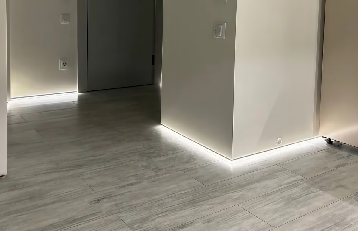 Представьте: мягкий свет струится прямо из-под стены, создавая ощущение, что она парит в воздухе. Это не магия, а современное дизайнерское решение — теневой плинтус. Он не просто скрывает щели, а становится изюминкой всего интерьера. Разбираемся, как воплотить эту красоту в жизнь, не навредив стенам. Теневой плинтус — это не обычная рейка, которую прибивают в конце ремонта. Это специальный профиль, который углубляют внутрь стены, создавая скрытую нишу. Именно в эту нишу позже помещают светодиодную ленту, чей свет отражается от пола и создает тот самый магический эффект парения. Важное правило безопасности! Никогда не штробите под него несущие железобетонные стены. Это ослабит их конструкцию. Вместо этого используйте слой штукатурки или смонтируйте каркас из гипсокартона, чтобы нарастить толщину стены и создать нишу. Монтаж теневого плинтуса — это не финальный штрих, а часть процесса отделки. К нему приступают после заливки стяжки и оштукатуривания стен, но до укладки финишного напольно