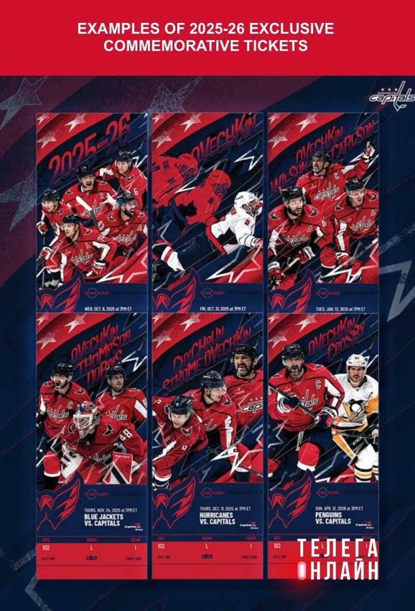 📸Фото дня Ради прощания с Александром Овечкиным, для которого предстоящий сезон в НХЛ, вероятно, станет последним, «Вашингтон Кэпиталз» вернулся к выпуску бумажных билетов на матчи. Коллекционеры наверняка в восторге. 🚲 Подпишись на Телега Online