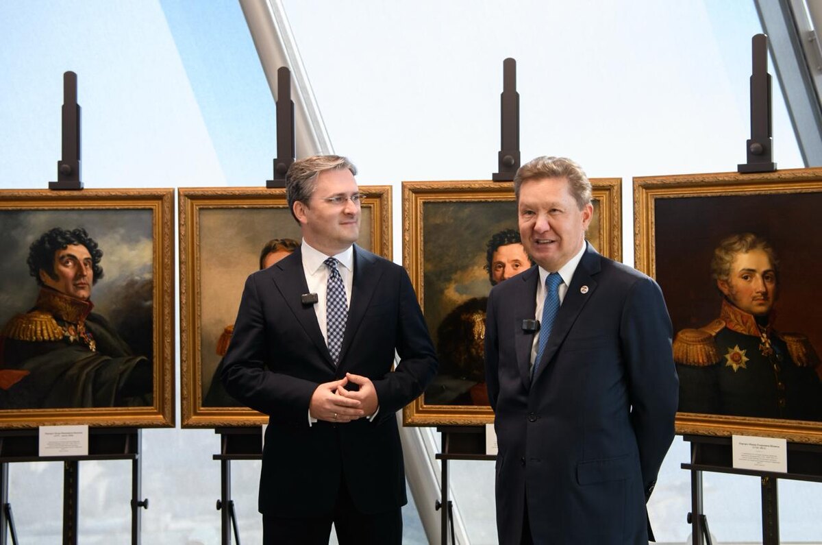 В торжественной церемонии в Лахта Центре приняли участие Алексей Миллер и Министр культуры Республики Сербии Никола Селакович. Копии портретов изготовлены по заказу «Газпрома» Государственным Эрмитажем, где хранятся оригиналы работ. На портретах изображены российские генералы из знаменитой «Галереи героев 1812 года»: Николай Вуич, Николай Депрерадович, Илья Дука, Петр Ивелич, Михаил Милорадович, Иван Шевич и Георгий Эммануэль, а также герой русско-турецкой войны 1768-1774 гг. генерал-лейтенант Семен Зорич и выдающийся реформатор народного просвещения Теодор Янкович де Мириево. При создании копий художники-реставраторы Государственного Эрмитажа использовали историческую технику и технологию живописного процесса, а также близкие по составу к оригинальным грунты, фактуру, масляные краски и лаки. В Историческом музее Сербии портреты станут частью постоянной экспозиции, посвященной многовековым российско-сербским отношениям, сообщает телеграмм-канал "Газпром". Алексей Миллер, председатель п