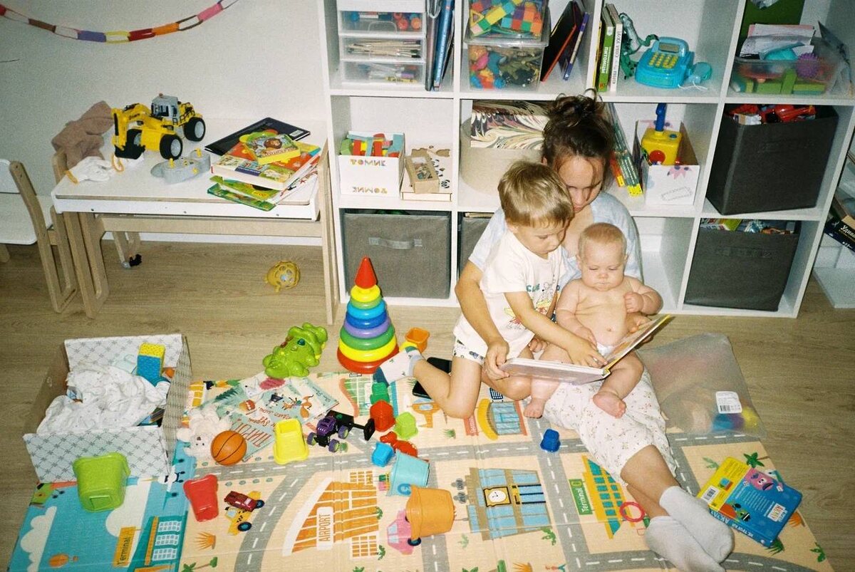 Проявили августовскую плёнку 🤩 как будто кто-то блеванул разноцветными игрушками, но мне уютно ❤️ ➖наш типичный вечерок: дети пересаживаются с моей головы на батину. И обратно. Читаем книги, играем во всякое, пытаемся вести диалог с мужем про ремонт, но все попытки разбиваются о желание детей иметь всё внимание на себе 🙄