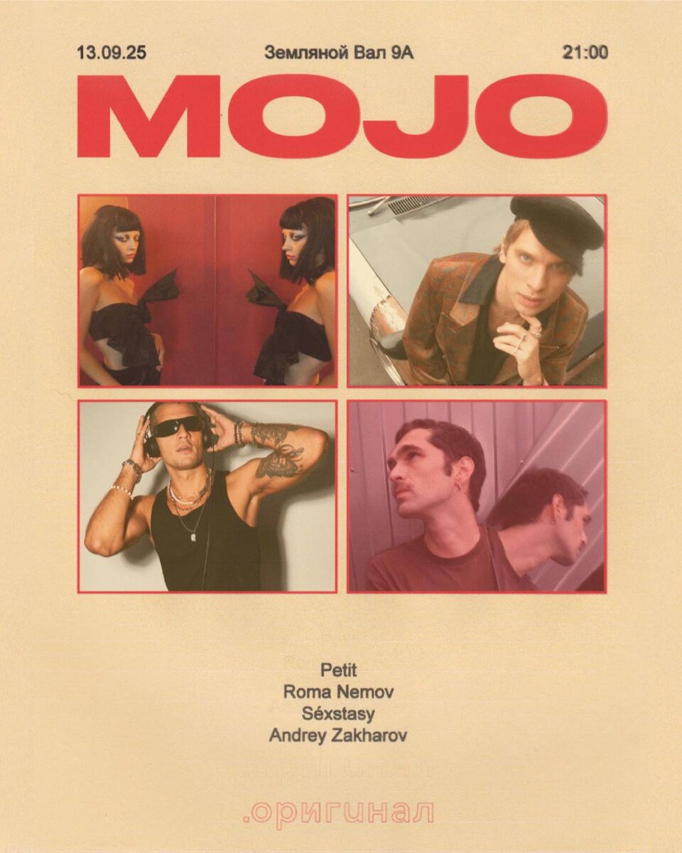 MOJO в Оригинале 13 сентября в московском пространстве «.оригинал» состоится запуск новой серии вечеринок от MOJO В дебютном лайнапе собраны артисты: Sexstasy Petit Roma Nemov Andrey Zakharov 🎫 original.moscow 📆 13 сентября, в 21:00 📍 Оригинал, Москва, ул. Земляной Вал, 9А