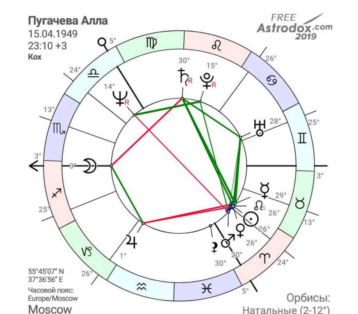 АСТРОРАЗБОР: Алла Пугачева Честно, я никогда не была увлечена её биографией или творчеством, но всегда уважала её голос. Особенно ранний период — «Миллион алых роз» и «Не отрекаются любя», когда рождалась целая эстрадная эпоха. И вот сегодня, посмотрев интервью, я впервые почувствовала её по-настоящему. Да, она меня вдохновила. И это literally стало тем самым триггером, почему я решила заглянуть в её натальную карту. Хотелось удостовериться (и надеюсь, ректификация верна), что в её карте действительно есть формула славы, и что она — тот самый вдохновенный воин, каким я её ощутила. Асцендент в Стрельце♐️ и Луна на асценденте объясняют её широту души и любовь к людям. В интервью я отчётливо почувствовала эту искренность: она любит жизнь, любит мир, и даже будучи легендой, говорит с другими просто и открыто. Солнце ☀️ в Овне ♈️ в пятом доме — архетип артистки. Она рождена для сцены. Это её внутренний огонь, который невозможно спрятать. Венера, Меркурий и Марс в Овне — в четвёртом д