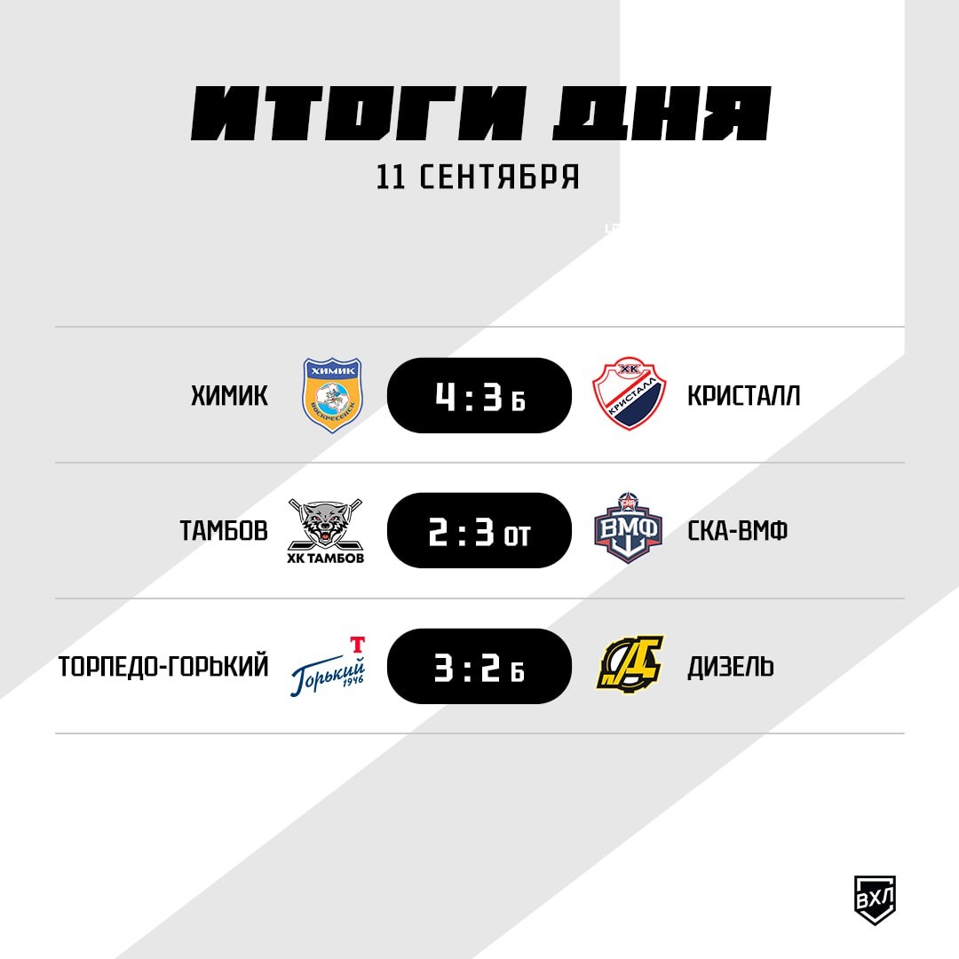 Итоги дня в ВХЛ СКА-ВМФ и «Торпедо-Горький» наконец-то вкусили победу. А вот «Кристаллу» не повезло, хоть они и умудрились три раза восстановить равенство в игре с «Химиком». В серии буллитов удача отвернулась от них. 📸ВХЛ @nhockey