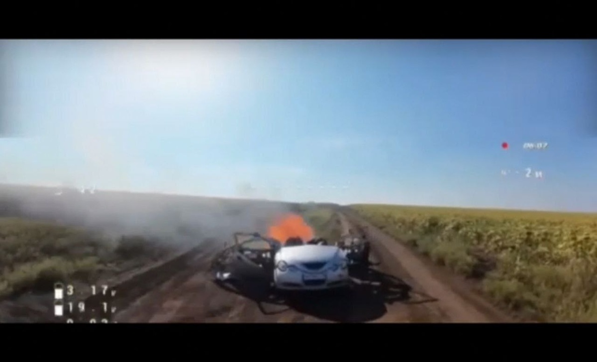 Украинский FPV-дрон заснял момент попадания БПЛА-камикадзе «Молния-2» по пикапу ВСУ