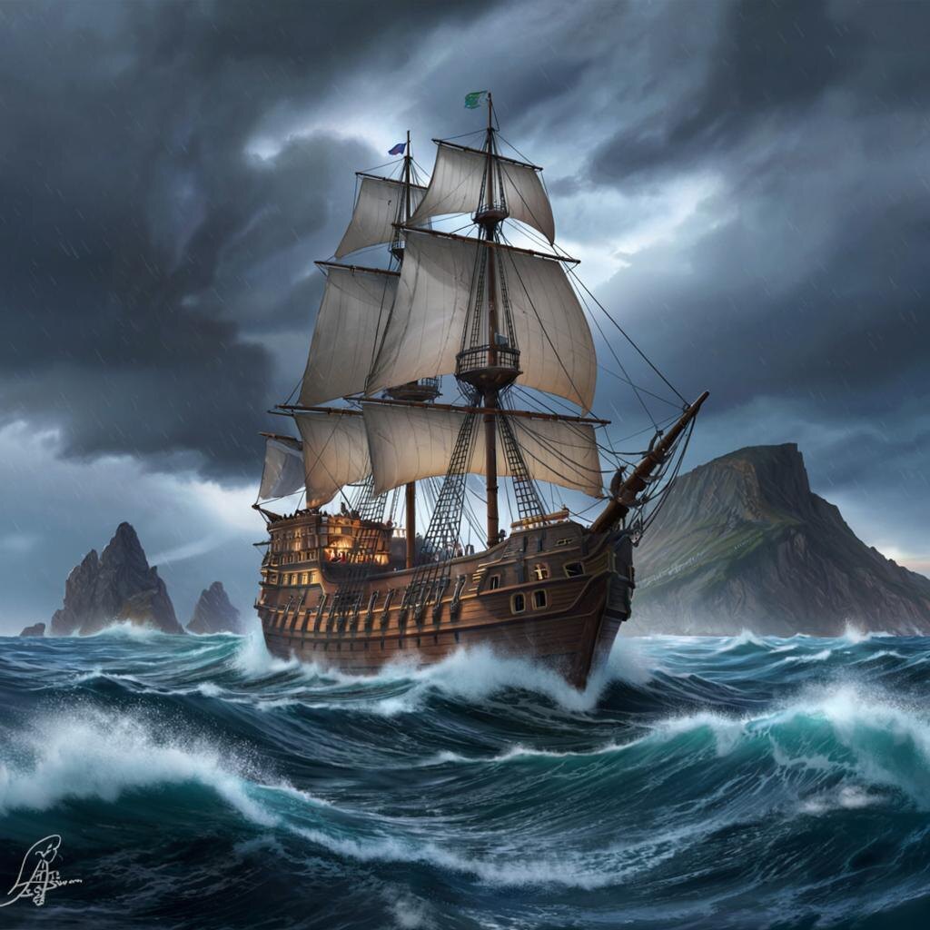 Говорили, что перед смертью капитан проклял море и всех, кто посмеет посягнуть на его богатства. Его душа, полная жадности и ярости, не смогла упокоиться. С тех пор дух капитана, в виде бледного призрака с горящими глазами, стал вечным стражем затонувшего галеона.